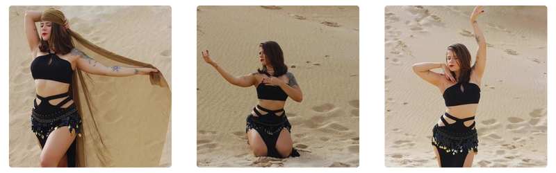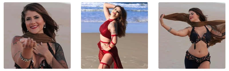 Aos 13 anos, já dava minhas primeiras aulas. Mas eu sabia que para ensinar com excelência, precisava me capacitar de verdade. Foi assim que mergulhei nos estudos – não apenas da dança, mas da biomecânica do corpo, da ciência do movimento e da mente humana. Me formei em Educação Física, aprofundei-me no Yoga, na neurociência do aprendizado e estudei incansavelmente sobre dança do ventre e Tribal Fusion.